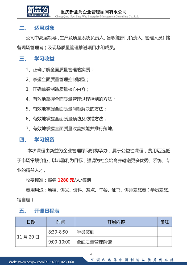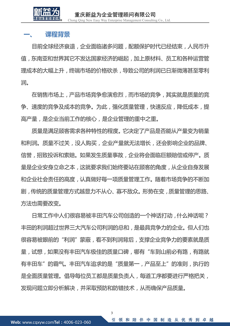 重慶2020.11 TQM全面質(zhì)量管理實(shí)務(wù)訓(xùn)練營